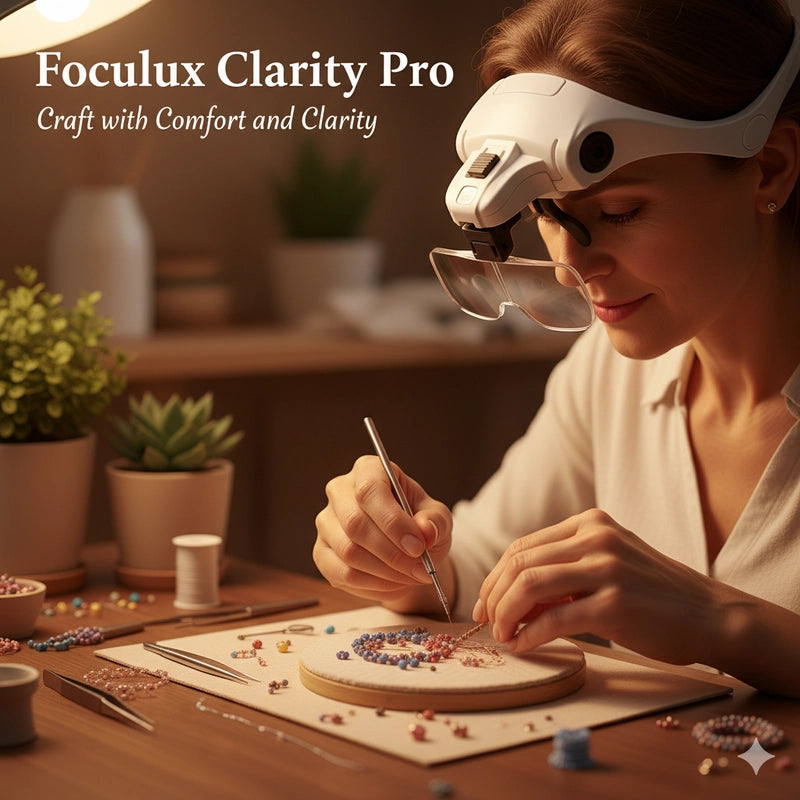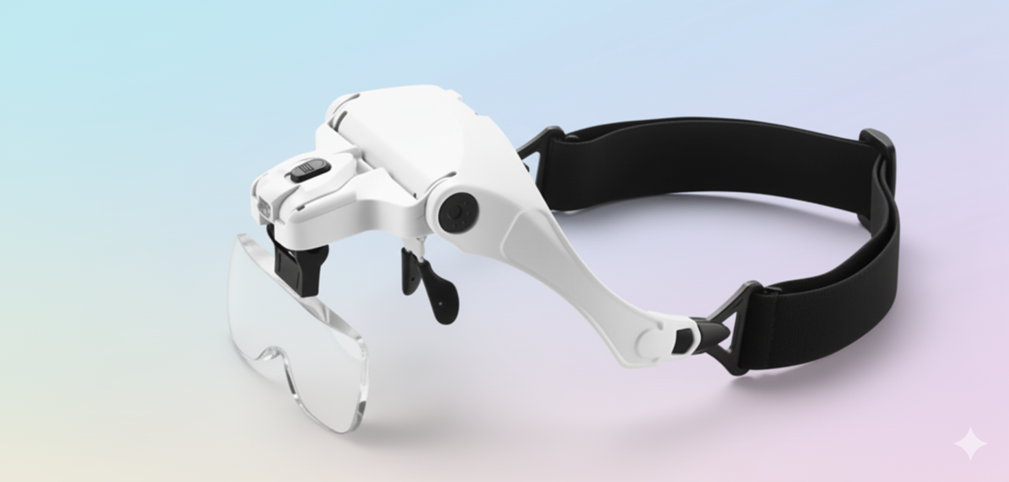 The ClarityProâ„¢ Headset is engineered for ultimate comfort. Its adjustable, soft headband ensures a secure fit without any pressure on your nose or temples, allowing for hours of focused, comfortable crafting.
